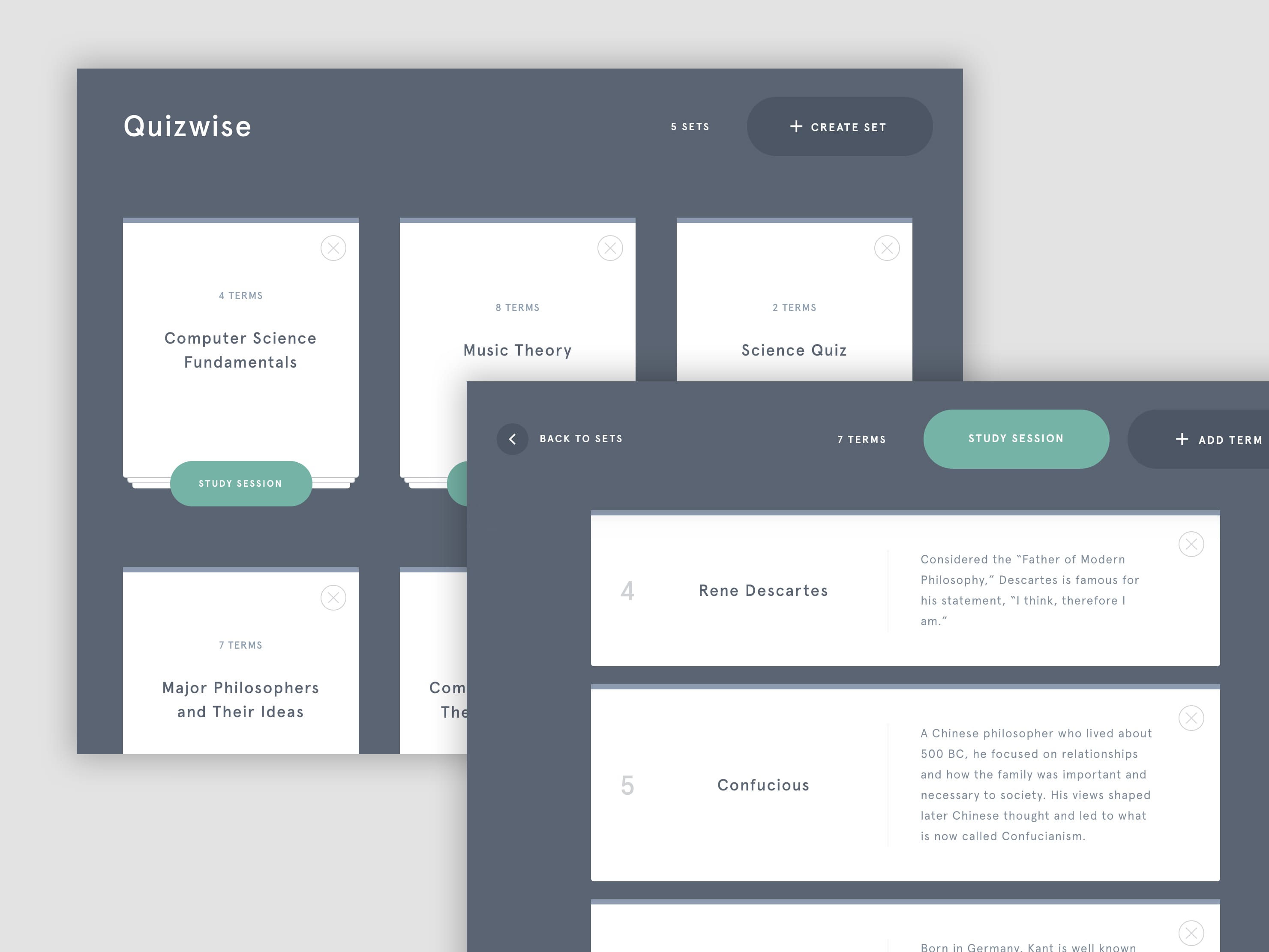 Quizwise quizwise.herokuapp.com Learning app for creating and studying flashcards. Frontend: ES6, React, Redux, Sass, Webpack Backend: Node/Express, PostgreSQL, Heroku