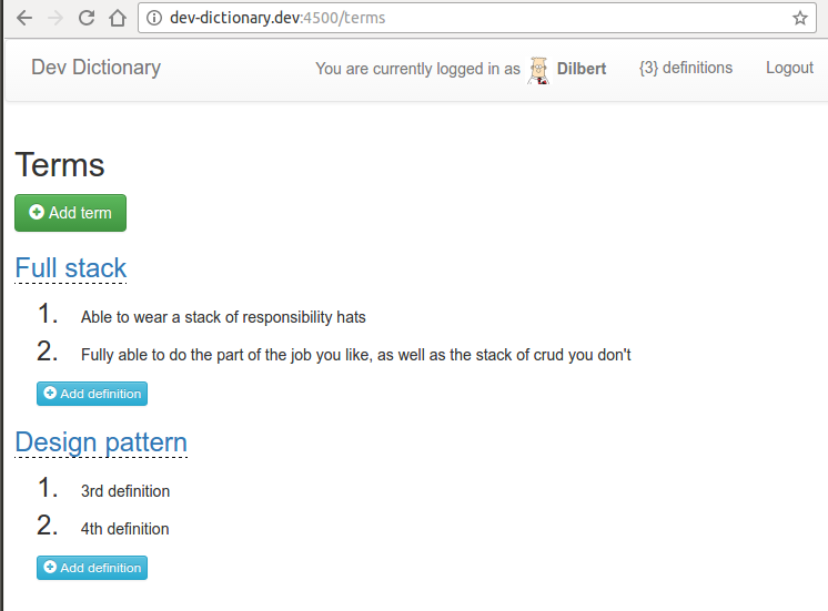 localStorageso that it remembers when your browser is refreshed. You'll need the user ID when POSTing a term to the server. -