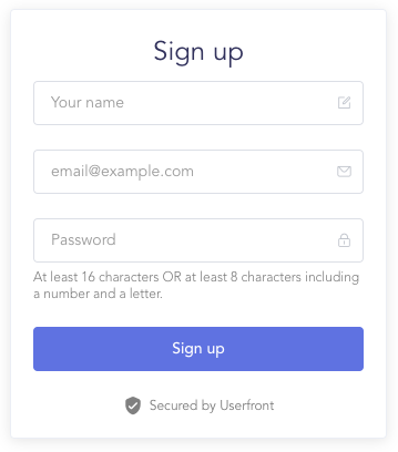 The Userfront HTML binding allows you to quickly add pre-built signup, login, and password reset forms to your website.