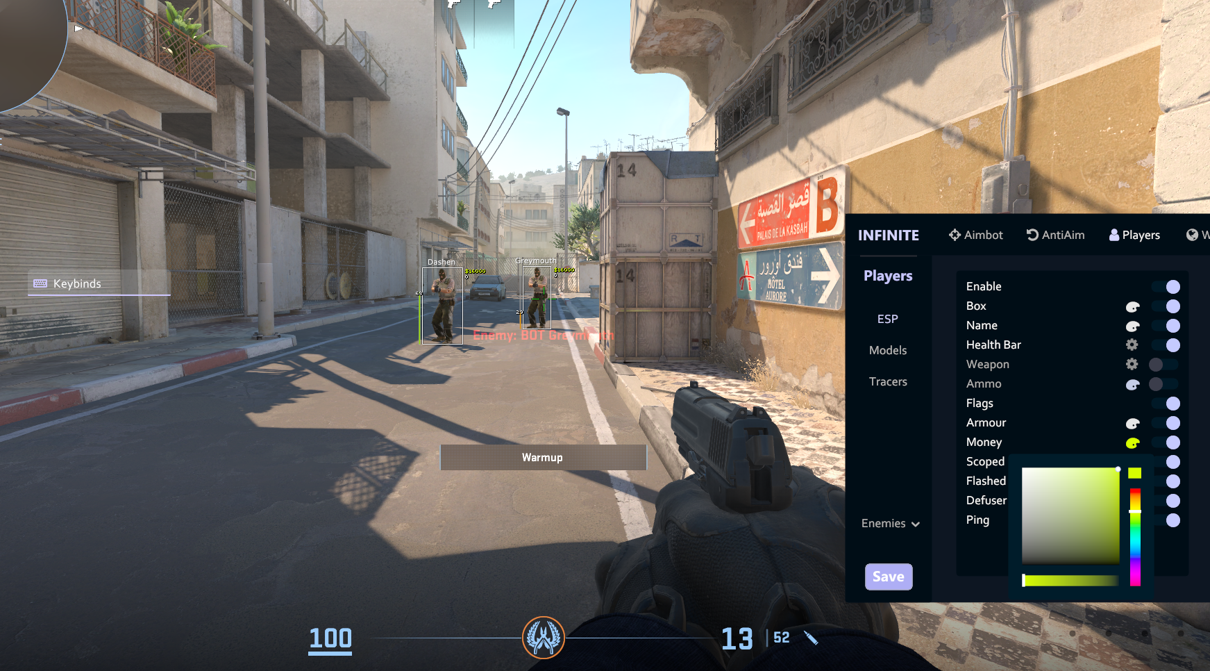 I wrote this way back in 2023 when CS:2 just released. Back then I had quite alot of free time on my hands which I spent creating cheats for multiple games (other than this). Quite the hobby of mine. However, now I am quite lacking in spare time required to even finish the version for CS:2. So enjoy the source code, which is somewhat good and bad at the same time. The source (by now) is definetely outdated and will not run in the latest CS:2 version, however pull-requests are welcome to fix that.