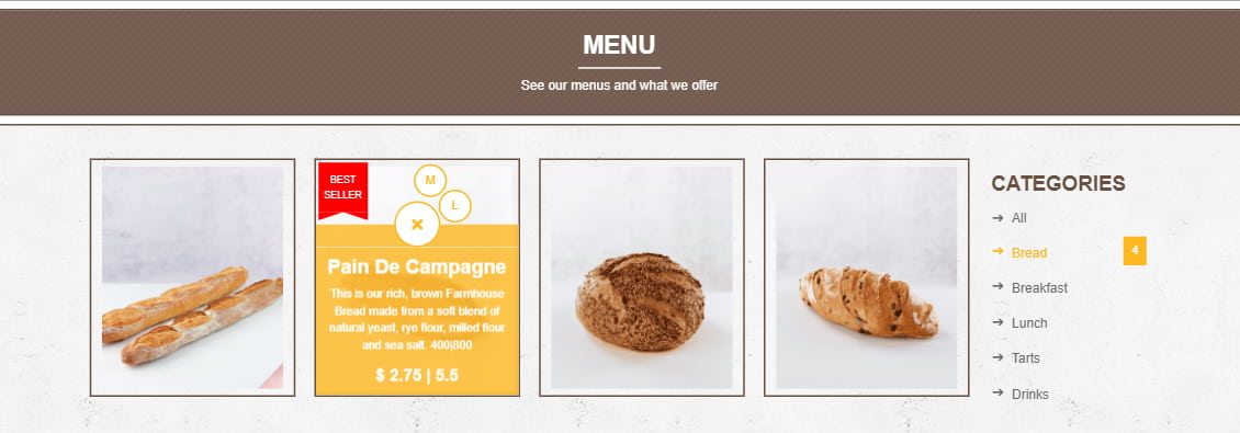 You can browse through the menu to keep up to date with the latest updates and prices according to product category. Some items have variations in size and price