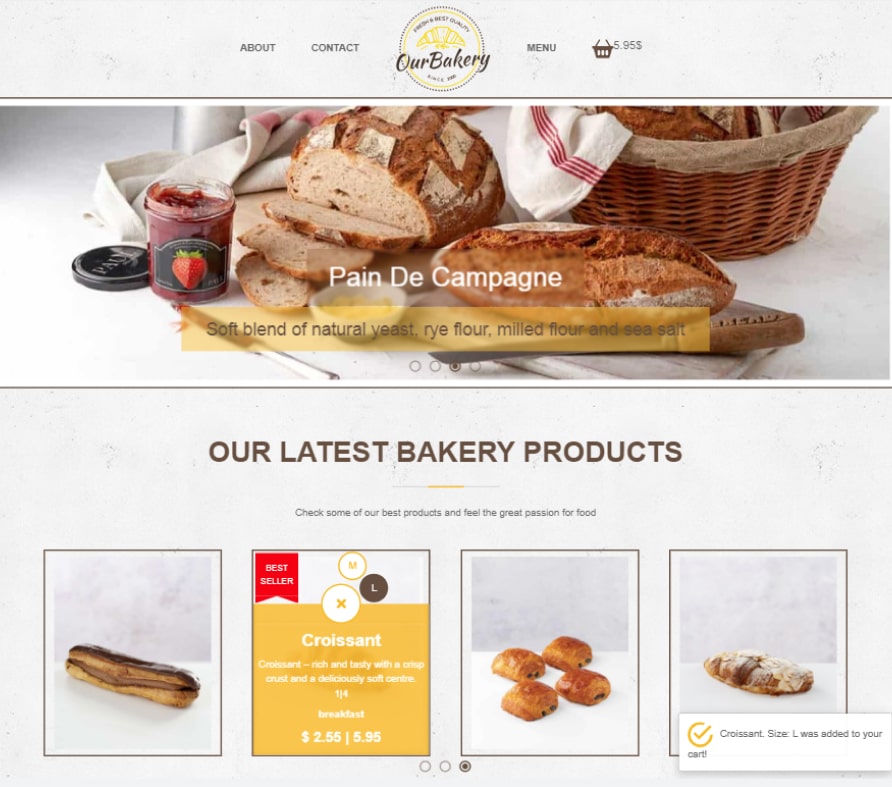 This is a classic b2c website. Here you can find out more about the bakery, view the menu, order, leave a review and sign up for news.