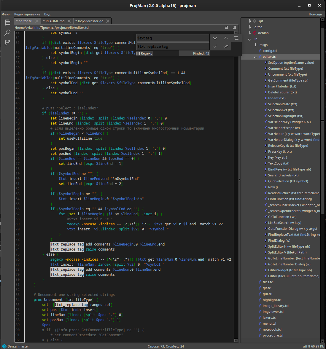projman ~/tmp/test.tcl ~/tmp/2.go ...
