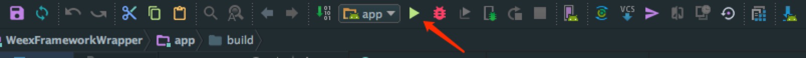 - 待项目构建完成,点击 AndroidStudio 上方工具栏的 Run ,即可运行项目。