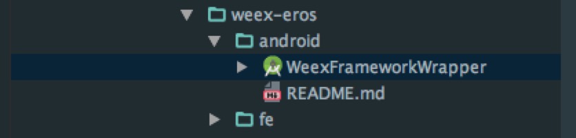- 找到eros在你本地的地址,选择 platforms/android/WeexFrameworkWrapper ,点击OK。