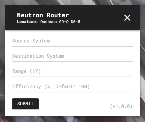 Neutron (name to be changed) is a desktop front-end for Spansh's popular Neutron Router for the space exploration, trading, and combat game, Elite: Dangerous. In addition to everything the Neutron Router offers, this front-end also provides real-time updates as you play, automatically copying new systems into your clipboard, and updating the remaining jump counts.
