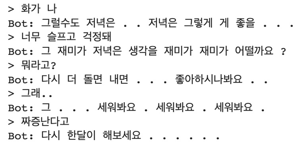 "대화가 잘 통하는" 챗봇 같은 경우, 주로 대용량의 데이터 베이스에 사람들의 일상 대화 내용이나 사람이 직접 입력한 대화를 정리 한 후 인풋으로 들어온 대화의 맥락에 맞는 단어나 문장을 골라내는 방식으로 구현됩니다. 하지만 이런 모델 같은 경우 대용량의 데이터베이스를 하나하나 검수하기 힘들다는 점, 크롤링한 대화를 이용한 경우 실제 개인정보가 유출될 수 있다는 점 등이 문제가 되기도 하는데, 그래서 RNN팅은 seq2seq 인코더 디코더 구조를 이용한 생성 모델링을 시작했습니다.