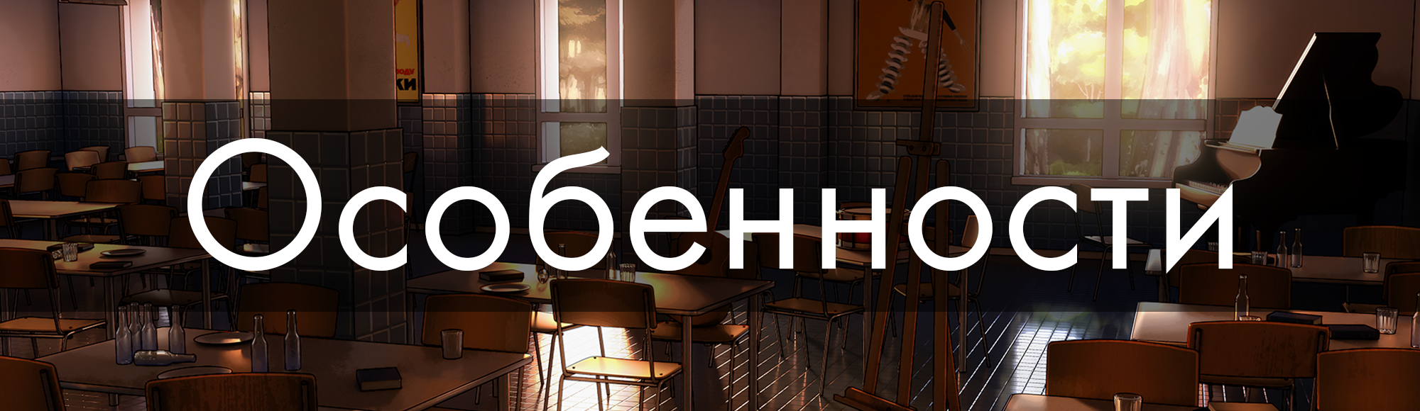 — Отсутствуют руты определённых персонажей и нет романтики.