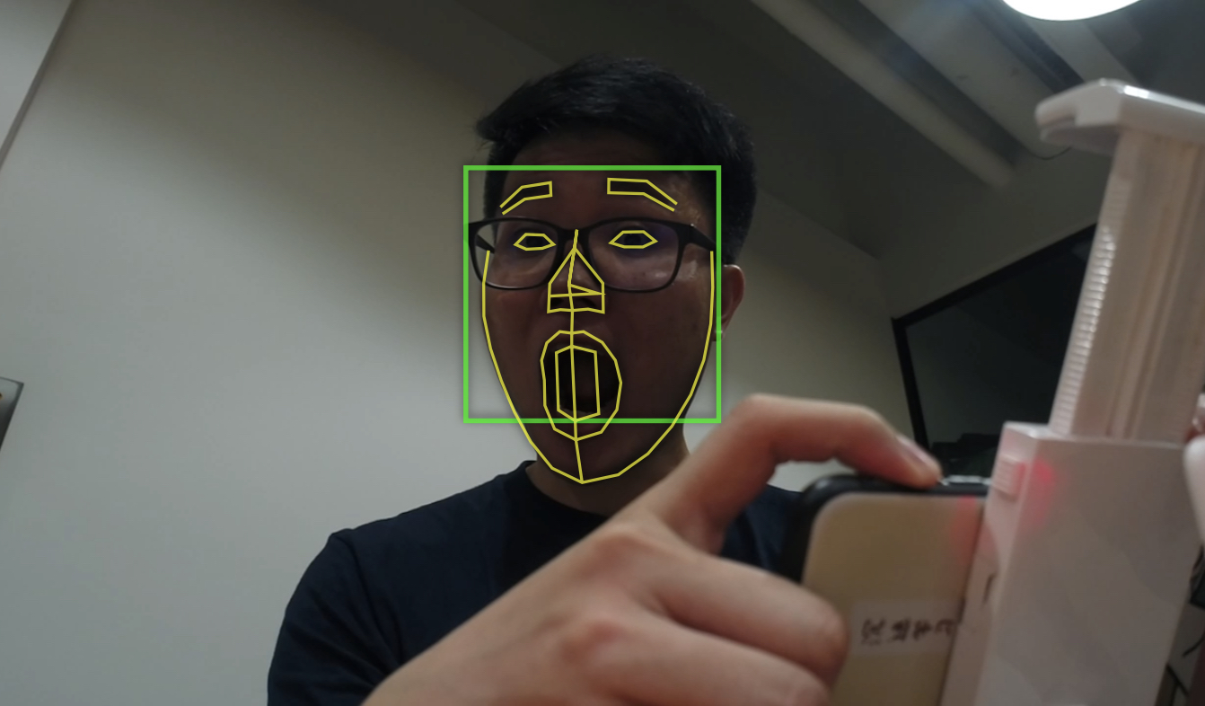 最终得到的结果是封装在 VNFaceObservation 的对象里的,通过该对象可以拿到人脸相对于图片的坐标:boundingBox 以及五官的坐标信息 landmarks,从而可以绘制在图传界面上。具体绘制方法 drawFaceObservations 可以在 Github 上查看。